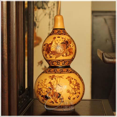 产品介绍葫芦烙画艺术又称烫画,火笔画,即艺术家用电烙铁在物体上熨出烙痕作画,与葫芦融为一体能永久保存、收藏,艺术价值极高。烙画创作在把握火候、力度的同时,注重“意在笔先、落笔成形”。烙画不仅有中国画的勾、勒、点、染、擦、白描等手法,还可以熨出丰富的层次与色调,具有较强的立体感,酷似棕色素描和石版画,因此烙画既能保持中国传统绘画的民族风格,又可达到西洋画严谨的写实效果。也可订做属于自己的特有画面或肖像,使其有独特的艺术魅力,因而给人以古朴典雅、回味无穷的艺术享受。产品属性葫芦雕刻艺术即艺术家用刻刀将葫芦的壳镂空或浅刻,以粗犷的空隙线条勾勒出要描绘的山水、花卉和人物。主要雕法有阳雕、阴雕、透雕、等等。主要刀法有直刀、平推刀、外侧刀、内侧刀等。施刀要做到稳(心静气和)准(准确度高)轻(用力恰当)慢(行刀缓稳)巧(刀法娴熟)。只有这样才能雕出一件精美的葫芦艺术品。其他说明 烙画葫芦的制作过程主要分为:葫芦生产,葫芦加工,最后成为葫芦工艺品。民间工艺品烙画葫芦分大(高35-40cm)、中(高15-25cm)、小(高5-12cm)。由于图案是被火勺灼(烫)上去的,所以仅有黑色。上面的画主要分为:风景,人物,动物,古代神话,古代灵兽(如:龙,风,麒麟,三脚乌鸦等)等。交易说明电议 面议 网上交易