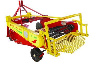 2CMX-2型马铃薯种植机,是一种集种植、施肥、扶垄于一体的新式种植机,与大于等于18kw的四轮拖拉机配套作业,其结构紧凑,性能可靠,操作方便,维护保养简单。该机器主要由地轮、机架、开沟器、排种器、种箱、肥箱、扶垄等部件组成。整机由拖拉机的液压悬挂装置挂接在拖拉机的后端。作业时拖拉机牵引机器前进,由机器上的地轮通过变速完成排种,同时排肥装置也将适量的肥料排放在沟里,由覆土器把土覆平,从而完成整套作业程序。