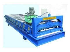 技术参数 长×宽×高 6400mm×1300mm×950mm成型轴:直径70mm 45#调质成型轮:材料45#锻打 镀硬铬传动方式:链轮、链条电机:3KW成型排数:11排全自动电脑定长切断系统:泵站电机:3KW四级剪切模具:Gr12成型速度:8-10m/min压制厚度:0.2-0.7mm压制宽度:1000m有效板宽:850mm彩板的侧向和端部搭接。 安装每一块钢板时,应将其边搭接准确地放在前一块钢板上,并与前一块钢板夹紧,直到钢板的两端都固定为止。一种简单而有效的方法是用一对夹口钳分别夹住所搭接的钢板。在南方彩板一般设计为单层彩板,彩钢设备为了减少太阳辐射热量进入建筑物内部,在安装屋面板时,可以在屋面系统中装隔热层。有一种非常简单、经济而有效的方法,即在安装屋面钢板之前,在檩条或板条上铺上双面反射箔薄膜,这种方法同样还可以作为蒸汽隔离,以减少凝聚作用。 850型彩钢压瓦机设备生产的产品具有重量轻、强度高、承重大、抗震性好的特点,被广泛应用于多高层钢结构建筑领域,可根据生产需要生产各种不同外观的屋面板,且成品率高。 850型彩钢压瓦机设备包括:整机、PLC电脑控制系统、专用剪切设备、专业液压系统。彩钢压型设备特点及用途:经本公司彩钢瓦设备辊轧成型的压型板,既庄重高雅,又美观新颖,而且外观平整,波纹均匀,利用率高,强度大,生产自动化程度高,成本低廉,经久耐用。产品主泛适用于大中型企业民用建筑,如厂房、机车库、飞机库、体育场馆展览馆、影剧院等。