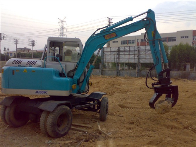 本厂主要生产挖掘机, JG608S小型挖掘机,65-7轮式挖掘机,履带挖掘机,608轮胎式挖掘机, JG608S履带式挖掘机,履带小型挖掘机,60-7轮式小型挖掘机,55-7履带式小型挖掘机,轮胎式小型挖掘机,55-7小型履带挖掘机,60-7小型轮式挖掘机,55-7小型履带式挖掘机,65-7小型轮胎式挖掘机,55-7小型履带液压挖掘机,65-7小型轮式液压挖掘机,80小型履带式液压挖掘机小型轮胎式液压挖掘机,履带液压小型挖掘机,85-7轮胎液压小型挖掘机, JG608履带式液压小型挖掘机,轮胎式液压小型挖掘机, 工作范围 动臂长度: 2870㎜ 斗杆长度: 1650㎜ 最大挖掘距离: 5700㎜ 最大挖掘深度: 3230㎜ 最大挖掘高度: 6150㎜ 最小回转半径: 1630㎜ 最大卸载高度: 3730㎜ 外型尺寸 总长: 1900㎜ 总宽: 2180㎜ 机高: 2860㎜ 运输状态斗杆外缘至回转减速机距离:3620㎜ 最大运输长度: 5300㎜ 最小离地间隙: 250㎜ 技术性能参数 发动机功率: 40kw/2300rpm 整机重量: 6000㎏ 斗容: 0.3m3 液压系统工作压力:19.5Mpa 定量泵: 2×46L/min 最大挖掘力: 41KN 爬坡度: 58%(30°) 接地比压: 33Kpa 行走速度: 35Km/h 最大牵引力: 40KN 平台回转速度: 10rpm 燃油箱容量: 130L