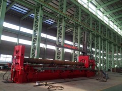 产品介绍三辊卷板机、液压卷板机、挂车卷板机、油罐车卷板机:该机属于液压型三辊卷板机,用于常温状态下将各种容器用碳钢、低合金钢上料后卷圆和矫圆等工序,同时可卷制圆弧形及圆锥型工件。 上辊可以垂直移动。 滚圆时通过电动机、减速机带动两下辊进行。 由于下辊的标高不变,所以便于进料和操作。详情见:www.jstljc.com产品属性本卷板机由上辊装置、下辊装置、机架、底盘、主传动装置、翻倒装置、托辊装置、侧托架装置、平衡装置、液压系统、电控系统等组成。上辊装置上辊装置由主油缸、上辊轴承座、上辊、双列调心轴承等组成。两主油缸提供卷制板材所需的加压力,主油缸工作压力为19.5 MPa。双列调心轴承采用低速、重载的调心滚子轴承。上辊呈鼓形,设计时以上辊最大加压力的负荷系数0.7均布载荷来预置补偿上辊受力变形挠度。上辊材质为合金钢42CrMo,粗加工后调质处理HB260~300,按照JB/ZG4289-86轧辊钢标准,刚度符合(1/700~1/1000)L L—指两侧机架中心线之间的距离。下辊装置下辊装置由下辊、下辊轴承座、下辊输入齿轮、下辊滑动轴承等组成。下辊材质为同样为合金钢,粗加工后调质处理HB260~300,按照JB/ZG4289-86轧辊钢标准,刚度符合(1/700~1/1000)L 指两侧机架中心线之间距离。下辊滑动轴承选用SF-2自润滑复合材料。下辊主传动提供动力,通过主传动输出齿轮、下辊输入齿轮、开式传动扭矩至下辊。托辊装置托辊装置由托辊、蜗轮蜗杆机构、斜楔机构等组成。托辊材质为45钢,调质处理,硬度HB190~220,辊子表面硬度低于下辊辊子的表面硬度,且表面车削螺旋槽,有效防止了下辊的氧化皮、杂质损坏下辊的工作表面。托辊共一组每组四根,根据卷制板材规格的负荷大小,进行上下调节。主传动装置主传动装置由主电机、三角皮带、圆柱齿轮减速箱、电液推杆制动器等组成,输出齿轮驱动两只下辊齿轮。主传动可以正反转,为板材的卷制提供卷制扭矩。翻倒装置翻倒装置由滑枕、翻倒油缸等组成。翻倒油缸活塞杆镀铬处理。翻倒装置的翻倒,便于制品沿辊子轴向方向取出。 (翻倒装置) 3-6、固定、翻倒侧机架、底盘 固定、翻倒侧机架、底盘为钢板焊接件,焊后去除应力处理。 固定、翻倒侧机架用来安置两主油缸。 底盘采用框架结构,抗扭断面系数高,地脚螺栓少,安装、调试方便。 固定侧机架同时用来安装俩支承油缸 (固定侧支架) 3-7、 上辊驱动装置(选配) 为克服卷制薄板时打滑现象,在上辊平衡装置处及上辊尾端增加上辊驱动装置。