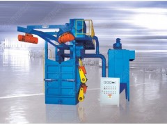 吊钩式自动抛丸机由抛丸机、抛丸室、吊钩传送器、丸料提升设备、丸尘分离器、丸料循环机构、粉尘过滤器、电控箱组成;设备传动采用循环吊钩旋转式,,当设备检测到工件进入设定抛射工位后,开启供丸系统,开始抛丸,工件钩吊在吊钩上在抛丸工作室中缓慢旋转,旋转时把工件的各个表面都暴露在喷丸流,钢丸通过抛丸机抛射在工件的表面进行除锈、强化工作;完成除锈、强化工作后的钢丸落入回收斗中借助电动机驱动。
