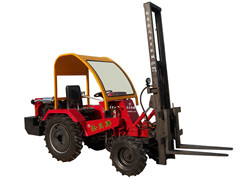 我公司生产的圣贝牌小型叉车zl06特点有:●采用全液压转向,机动灵活。●经济性好 ●生产效率高●作业能力强●爬坡能力强 ●机动灵活 ●安全可靠 ●驾驶舒适本机用小四轮拖拉机改装,液压转向,轻便灵活,成本低方便实用。