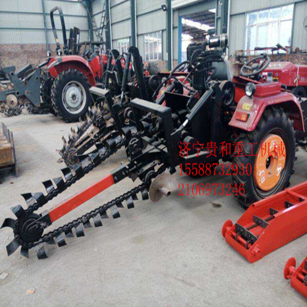 链条开沟机是一种高效实用的新型链条式开沟装置。其主要由动力系统、减速系统、链条传动系统和分土系统组成。油机经过皮带将转动传递到离合器后,驱动行走变速箱、传动轴、后桥等来实现链条式开沟机的向前或向后的直线运动。