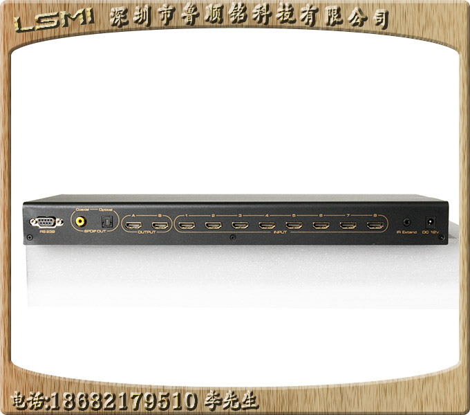 鲁顺铭新推出8x2HDMI8进2出矩阵切换器支持RS232通讯协议,可以把八个高清信号源与两个高清信号端同时连接起来。HDMI8进2出矩阵切换器,hdmi matrix switcher 8x2把它的数字音频接口连接到功放,可以享受到5.1声道的音频,支持HDMI音频分离,音独由SPDIF/光纤/同轴接口单独输出