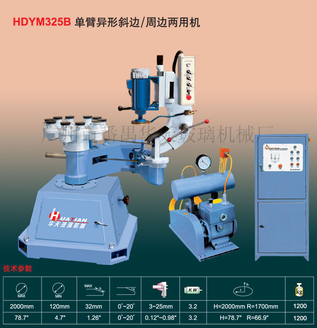 本机适用于各种异形平板玻璃的周边和斜边的磨削及抛光、对圆形玻璃可进行半自动操作,五星吸盘采用真空装夹玻璃,其旋转速度可在工作时任意调节,在加工不同规格玻璃时,装调非常简单快捷。