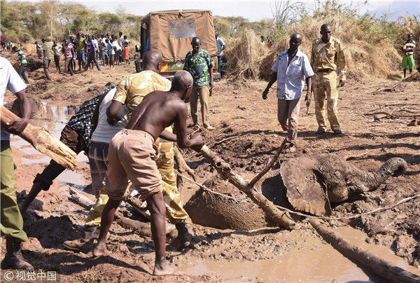 当地时间2019年5月14日,美国加利福尼亚太平洋海岸附近的海滩,一头灰鲸在海滩搁浅死亡。