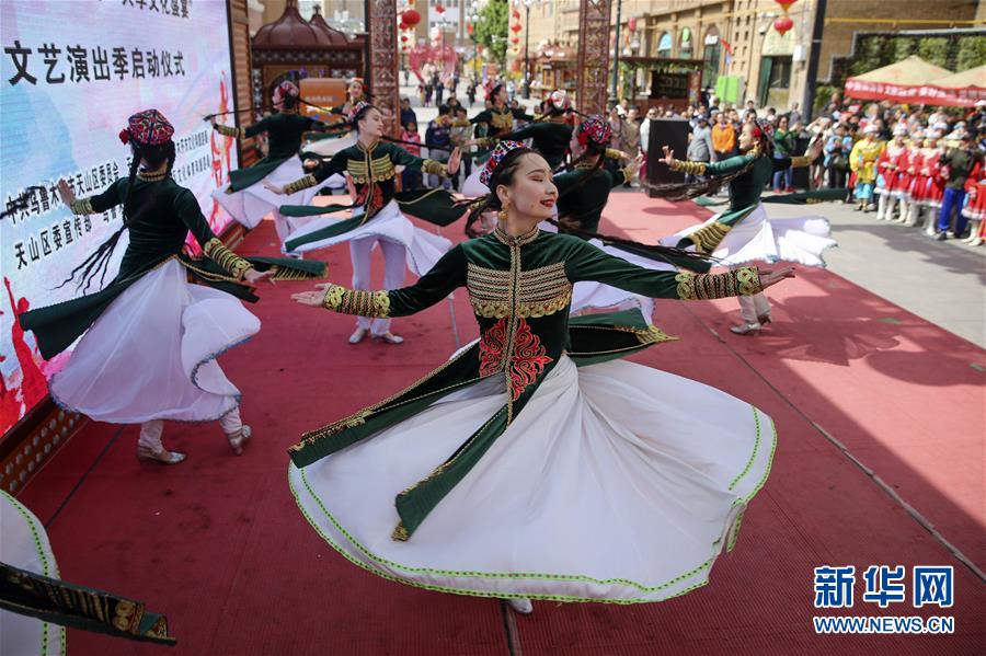 当日,2019年“中国旅游日”乌鲁木齐市天山区分会场活动暨“诚邀四海宾客·共享文化盛宴”文艺演出季启动仪式在乌鲁木齐大巴扎步行街举行。 新华社记者 王菲 摄