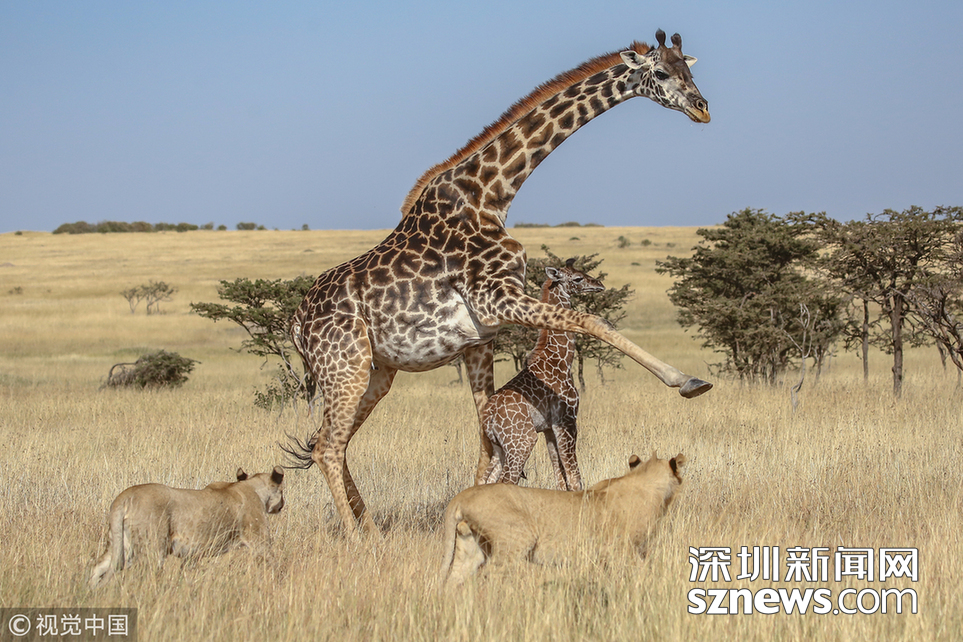 英国摄影师詹姆斯(James Gifford)在博茨瓦纳乔贝国家公园拍到一群狮子猎食大象的精彩画面。在詹姆斯的镜头下,一头母狮跳到了一头小象的背上想要将其拿下,但仅凭一己之力又不能做到。但当母狮的后援抵达时,象群也赶到了现场。最终,小象回到了象群中获得庇护,而狮群也不得不悻悻离去。