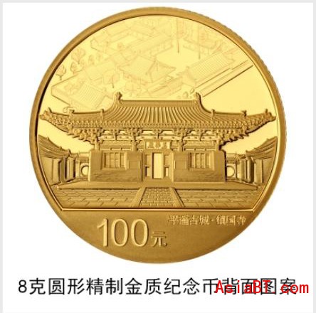 央行称,8克圆形金质纪念币背面图案为镇国寺万佛殿建筑造型,辅以镇国寺全景图组合设计,并刊“平遥古城·镇国寺”字样及面额。30克圆形银质纪念币背面图案为双林寺韦驮塑像造型,辅以天王殿建筑造型组合设计,并刊“平遥古城·双林寺”字样及面额。