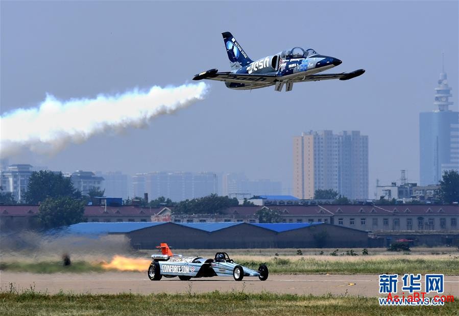 6月3日,在第十一届安阳航空运动文化旅游节开幕式上,航空运动爱好者驾驶飞机进行竞速表演。