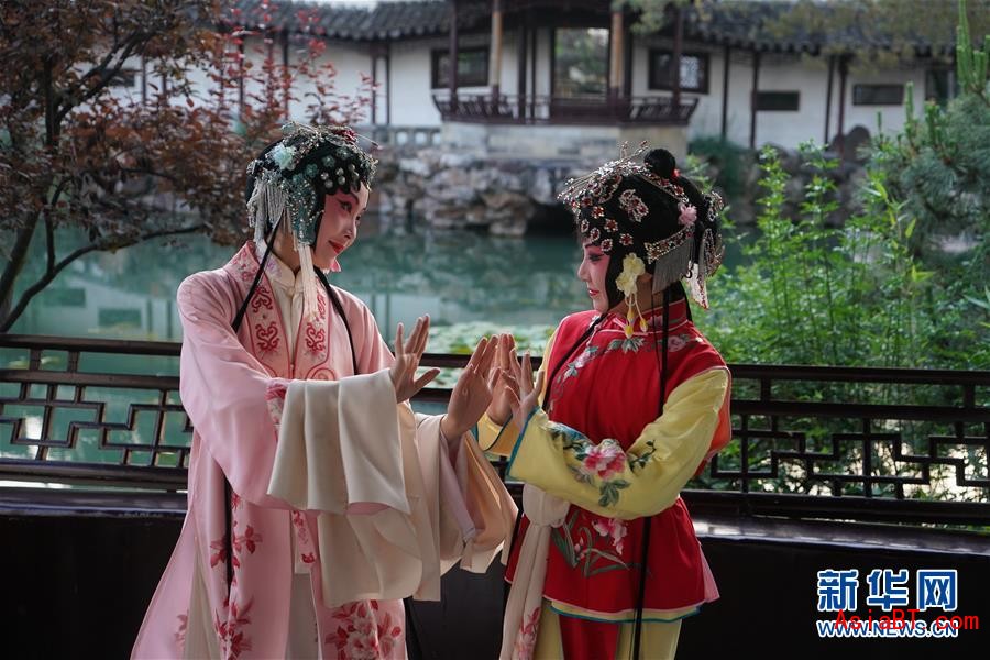 昆剧演员在苏州网师园排练(5月22日摄)。