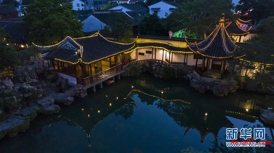 这是5月22日晚拍摄的苏州网师园(无人机拍摄)。网师园是唯一在夜间面向公众开放的苏州园林。
