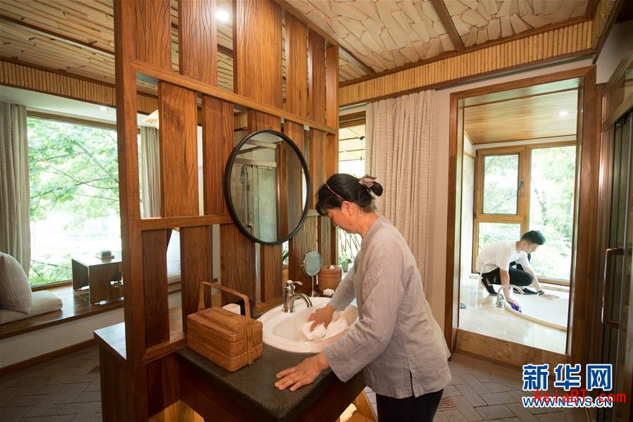 在万载古城的一家以手工艺品为主题的民宿内,住客在天井欣赏手工艺品(6月6日无人机拍摄)。 近年来,江西省万载县大力推进文旅融合,充分利用万载古城祠堂集群优势,以特色民宿为依托,打造以传统手工艺、文化创意、美食餐饮、休闲娱乐为主的旅游文化,吸引游客“愿留下”“尽兴玩”。 新华社记者 彭昭之 摄