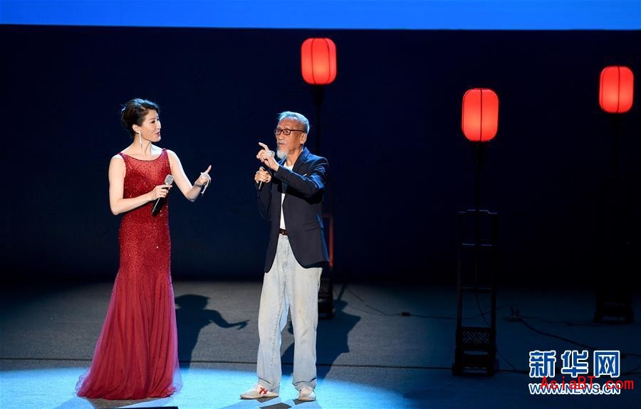 6月16日,主持人与音乐艺人陈彼得(右)在论坛大会上互动。