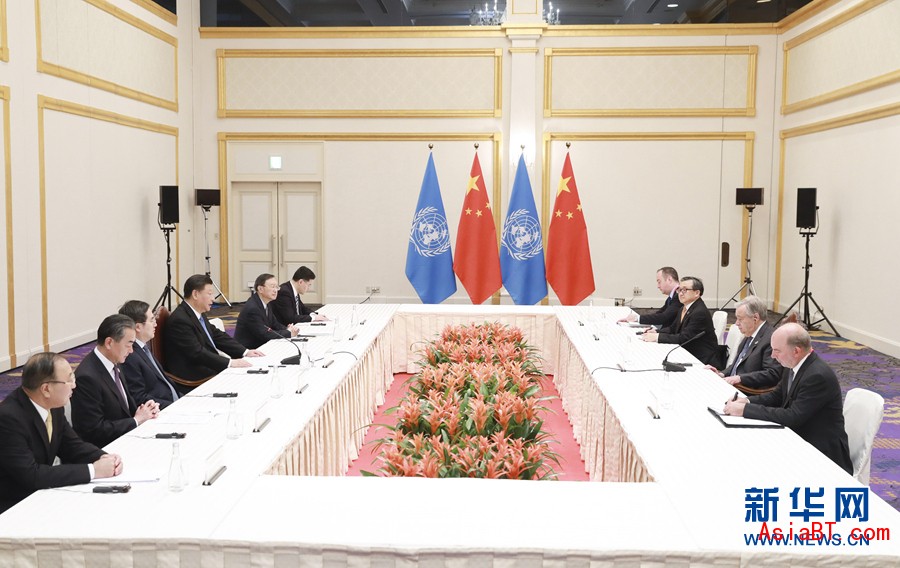 6月28日,国家主席习近平在大阪会见联合国秘书长古特雷斯。 新华社记者 庞兴雷 摄