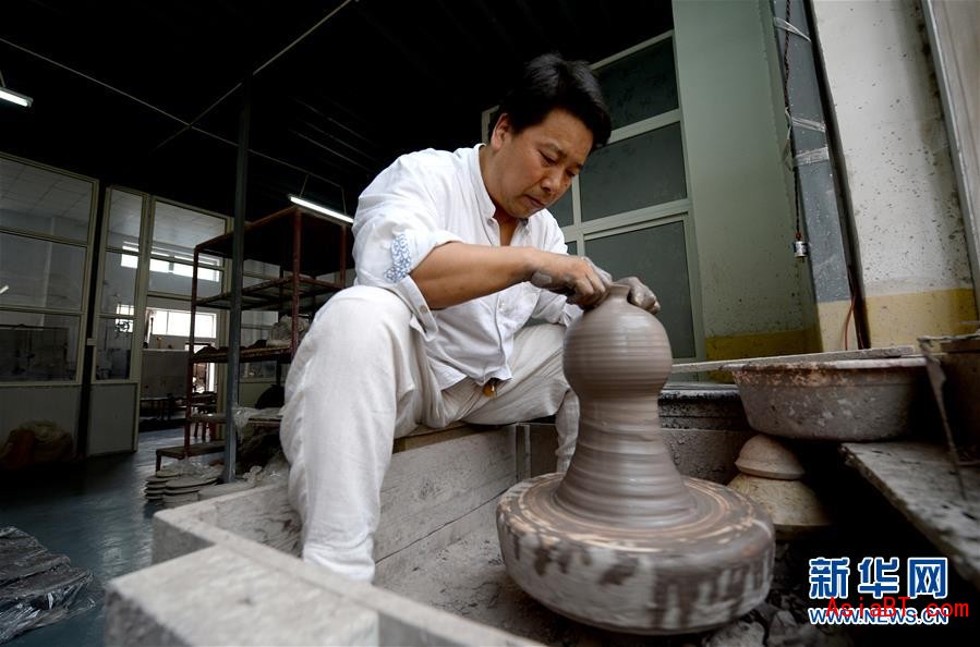 陕西陶瓷艺人手工再现“耀州窑倒装壶”千年技艺