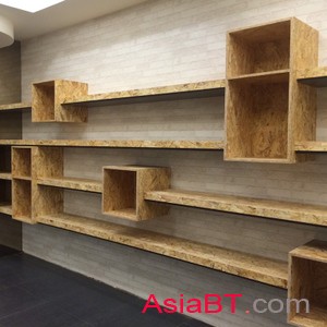 3、加工后取代细木工板、三合板、五合板、建筑模板、防火板、装饰板以及中密度纤维板。实木地板与龙骨间的衬板,或制成复合木地板的基材。家具厨具的结构板。房屋建筑用衬板、室内嵌板、隔热板、吸音板、天花板、墙板。营建用挡土板、沟渠模板、垫板等等。将欧松板表层贴单面后,可用于家具制造用的素板、抽屉底板、箱、盒、橱柜隔板、楼层板、床板等。