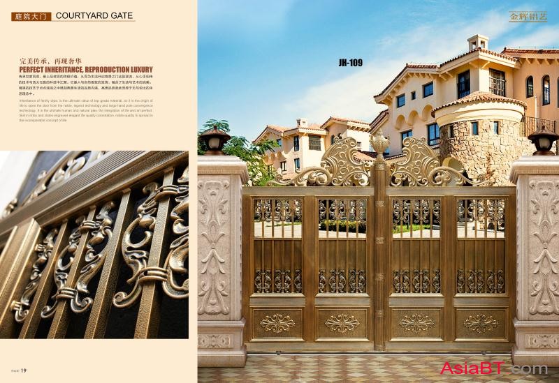 铝艺大门赏识的则更是铝艺的原始沧桑自然美,赏识它款式多样化和人工手锻锤痕,而非工业机器痕迹。铝矿石只能越来越少。越原始的越传统的则是越有价值的工业化出产并不能悉数替代手艺制造,铝艺制品只要手艺打制的才具有生命力,由于有些杂乱的外型和赋有人性化、个性化的著作,靠机器是作不出来的一个工业模具能够出成百上千件商品,而每一件手艺打制的铝艺著作,只能是一件孤品,天下没有第二件。人类能够凭借机器,使用机器去制造铝艺大门,但绝离不开手艺。所以,一件铝艺著作的含金量”凹凸,除了根本的时刻长短、原料、厚重度以外,主要看铝艺大门描绘美学含量和手艺制造才智的凝聚量的多寡,看它商品也是艺术品。