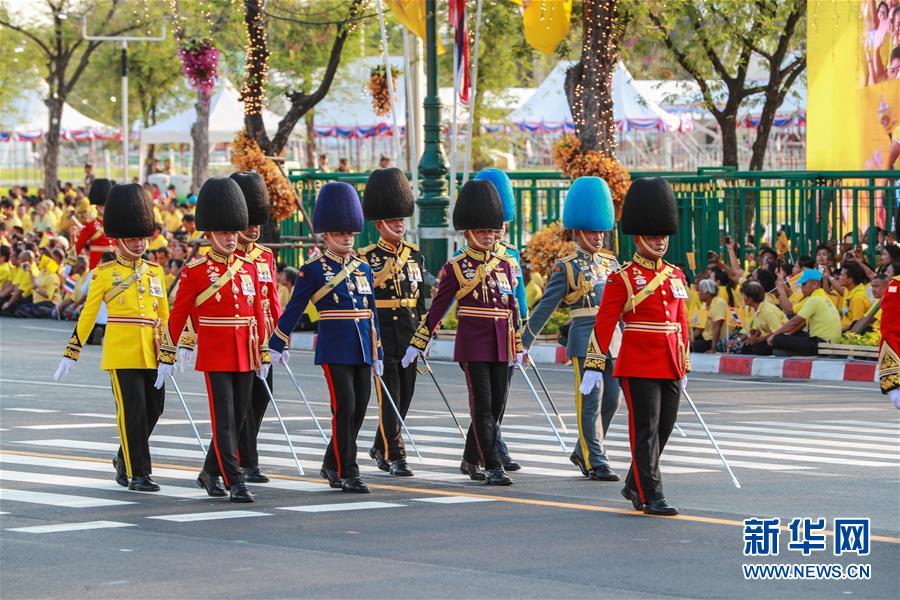 泰国国王加冕典礼巡游在曼谷举行日期:2019-05-07 点击:157 展开全部 查看原图5月5日,仪仗队在曼谷大王宫附近举行的泰国国王加冕典礼巡游上列队前进。