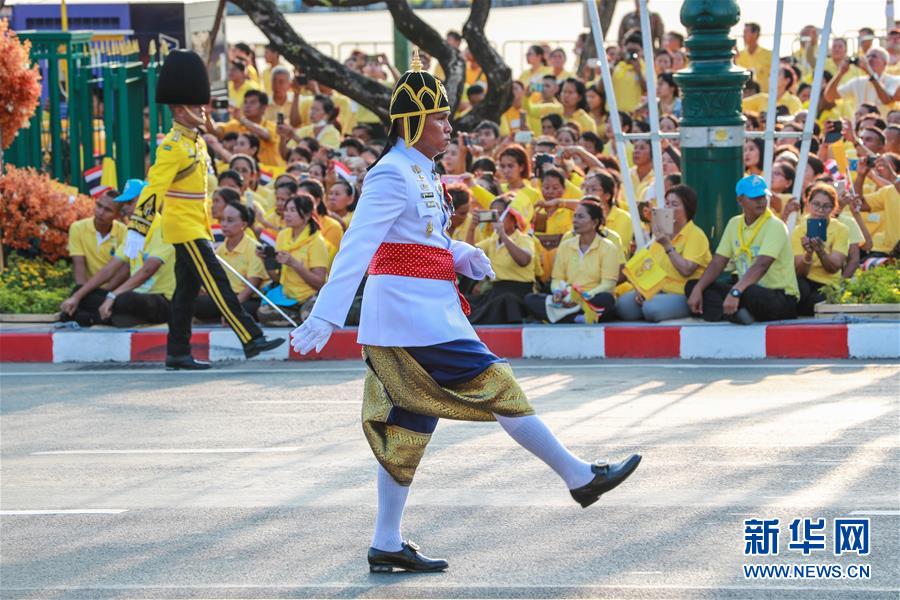 泰国国王加冕典礼巡游在曼谷举行日期:2019-05-07 点击:157 展开全部 查看原图5月5日,仪仗队在曼谷大王宫附近举行的泰国国王加冕典礼巡游上列队前进。