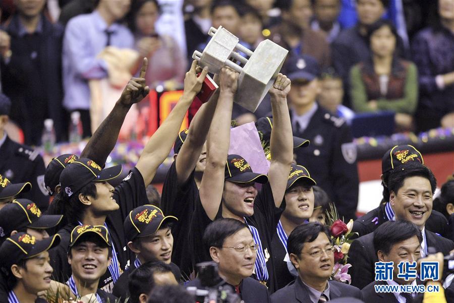 广东队九次获得CBA总决赛冠军日期:2019-05-13 点击:179 展开全部 查看原图2008年2月22日,在2007-2008赛季CBA总决赛第五场比赛中,广东宏远队主场以90比81战胜辽宁盼盼队,夺得冠军。这是广东宏远队球员朱芳雨在颁奖仪式上高举总冠军奖杯庆祝胜利。