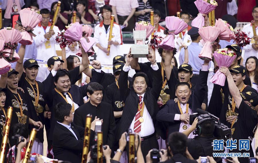 广东队九次获得CBA总决赛冠军日期:2019-05-13 点击:179 展开全部 查看原图2010年4月25日,在2009-2010赛季CBA总决赛第五场比赛中,广东东莞银行队主场以103比94战胜新疆广汇队,夺得冠军。这是广东东莞银行队主教练李春江(中)高举冠军鼎。