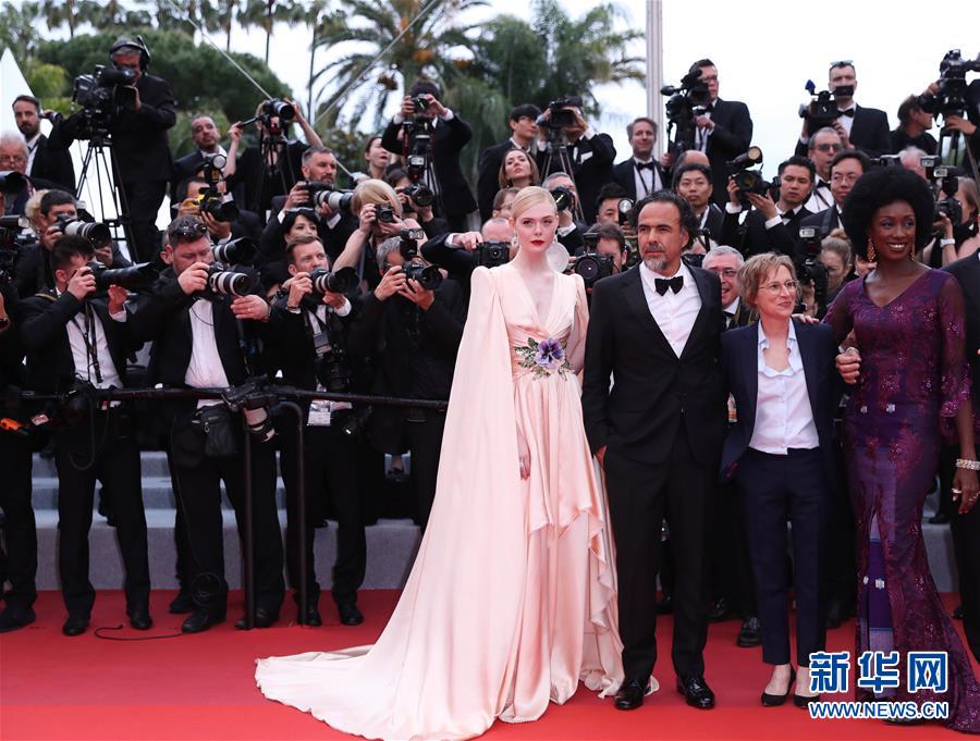 5月14日,在法国南部城市戛纳,戛纳电影节主竞赛单元评委墨西哥导演亚历杭德罗·伊尼亚里图和美国演员埃勒·范宁亮相开幕式红毯,以及主竞赛单元评委出席第72届戛纳电影节开幕式。 5月14日,第72届戛纳电影节在戛纳开幕。本届电影节将持续至5月25日。 新华社记者 张铖 摄