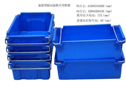 采用国外成熟的ROTATION(旋转成型)技术,工艺完整,一次成型,具有无焊无缝、无毒无味、耐酸碱、耐腐蚀、耐碰撞、耐高温(最高可达160℃)、耐冷冻(-40℃),不易老化,安装运输安全快捷等优点。产品由中国人民保险公司提供产品责任信誉保险。耐高温周转箱规格为:610*375*200(外径),520*320*193(内径),-